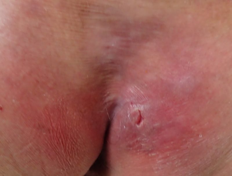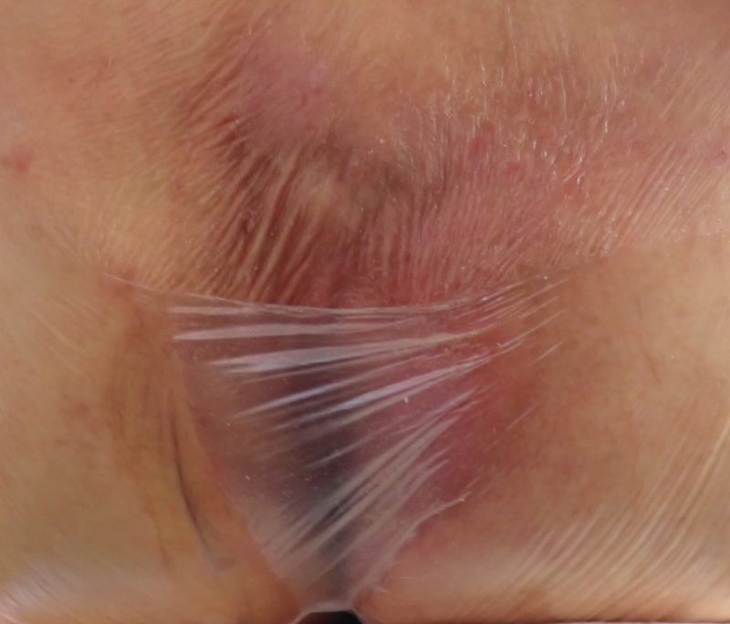 1ヶ月後。フィルムが貼ってあるので分かりづらいですが、皮膚状態は大分改善していました。