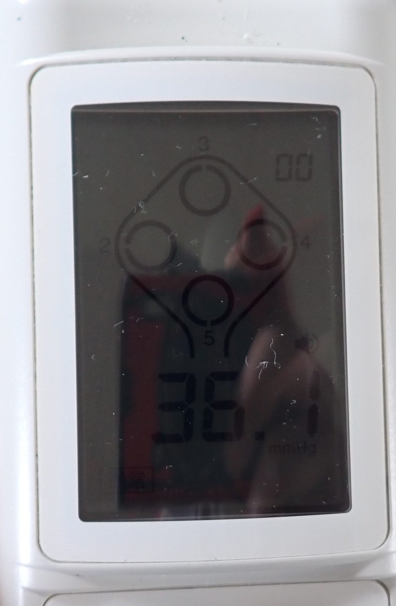 体圧を測定してみると、36.1mmHgでした。